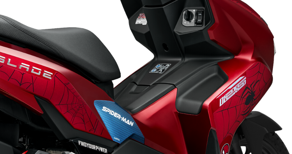 Phiên bản Marvel ‘ Spider-Man bùng nổ trong sắc đỏ đặc trưng, cùng các đường đồ họa lấy cảm hứng từ bộ giáp của nhân vật, giúp chiếc xe mang dáng dấp của một người hùng đang xoay chuyển linh hoạt và bứt phá không ngừng giữa nhịp sống đô thị.